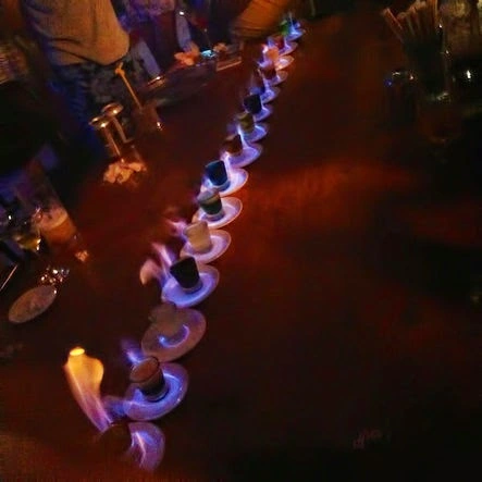 點餐之後會送上 16 杯 shot,接著在盤子上倒酒點火,等火全部燒完之後立刻拿吸管喝乾,加熱後的酒精吸收特別好,效果百倍。我分到了其中的兩杯,結果隔天宿醉⋯⋯至於 T 恤則是讓我們寫了些屁話加簽名,決定要把它留在系上當成紀念了!